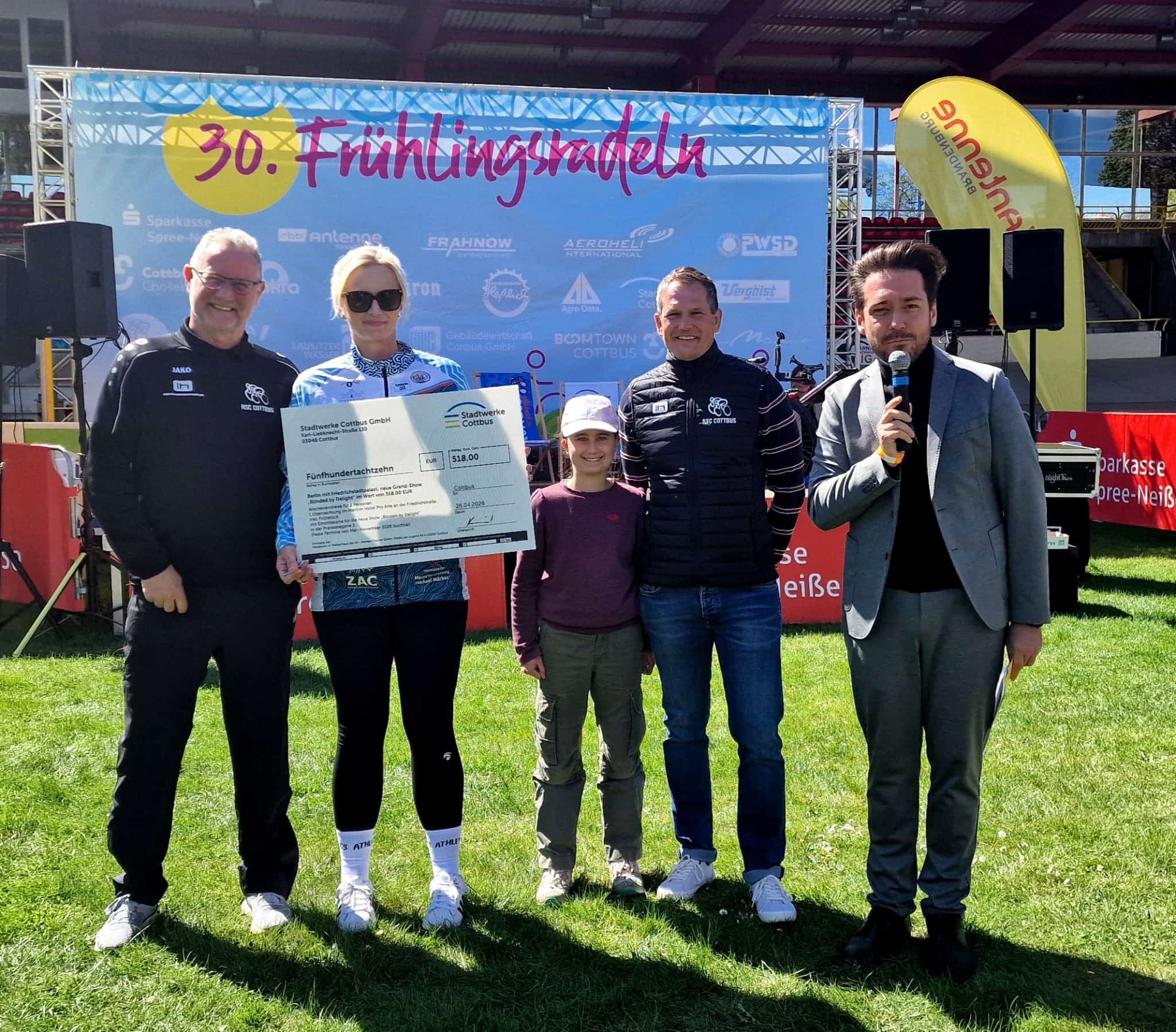 Am vergangenen Sonntag veranstaltete der RSC Cottbus zum 30. Mal sein beliebtes Frühlingsradeln. Bei bestem Sonnenschein gingen pünktlich um 10 Uhr fast 500 begeisterte Radfahrerinnen und Radfahrer auf die rund 25 Kilometer lange Strecke. Die Tour führte in Richtung Cottbuser Ostsee und über Haasow sowie Kahren zurück zum Lausitz-Velodrom. Dort angekommen erwartete die Teilnehmerinnen und Teilnehmer ein buntes Rahmenprogramm mit Livemusik, Tombola und leckeren Spezialitäten vom Grill. Ein besonderer Höhepunkt war die große Verlosung am Ende der Veranstaltung. Der Hauptgewinner durfte sich über ein Elektrofahrrad vom Fahrradcenter Heßlich freuen. Weitere attraktive Preise waren unter anderem ein Wochenende mit einem Hybridauto vom Autohaus Frahnow, ein Wochenendreisegutschein zum Friedrichstadt-Palast in Berlin gestiftet von den Stadtwerken Cottbus, sowie viele weitere schöne Gewinne. Das 30. Frühlingsradeln war damit erneut eine rundum gelungene Veranstaltung und ein starkes Zeichen für die Freude am Radfahren in der Region.